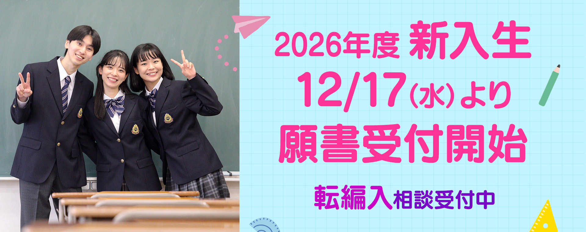 | 2025.12.23 | 新入生の入学願書受付を開始しています |
