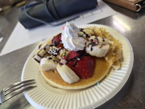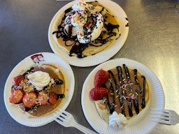生徒は3~4名での実習。それぞれのグループが思い思いのパンケーキを作りました。