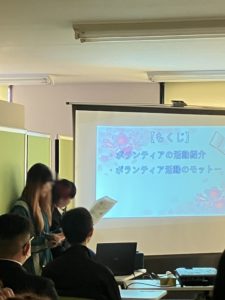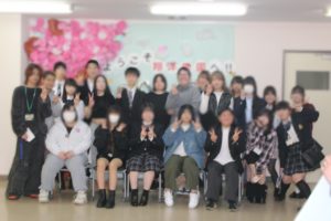 キャンパス内には1か月前からボランティア部の2・3年生がフォトスポットとなるように背面の壁一面に飾りつけをしてくれました。また、昨年のボランティア部の活動や準備の様子を動画にまとめ、おもしろ・おかしく、そしてとてもかわいく発表をしてくれました。動画を見た校長先生もとても感動していました。