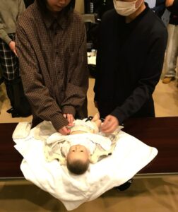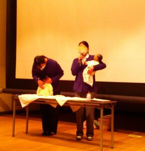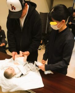 ハローベイビーや新生児人形抱っこ・おむつ交換の実技演習