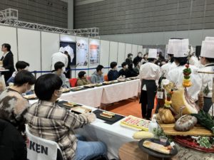 【②調理師】栄養という分野において避けては通れない道であるため参加しました。正直職業体験というよりは学校紹介でした。砂糖不使用の紫芋のポタージュが甘かったことから加熱したとき糖に変化させる酵素のありがたみを知ることができました。